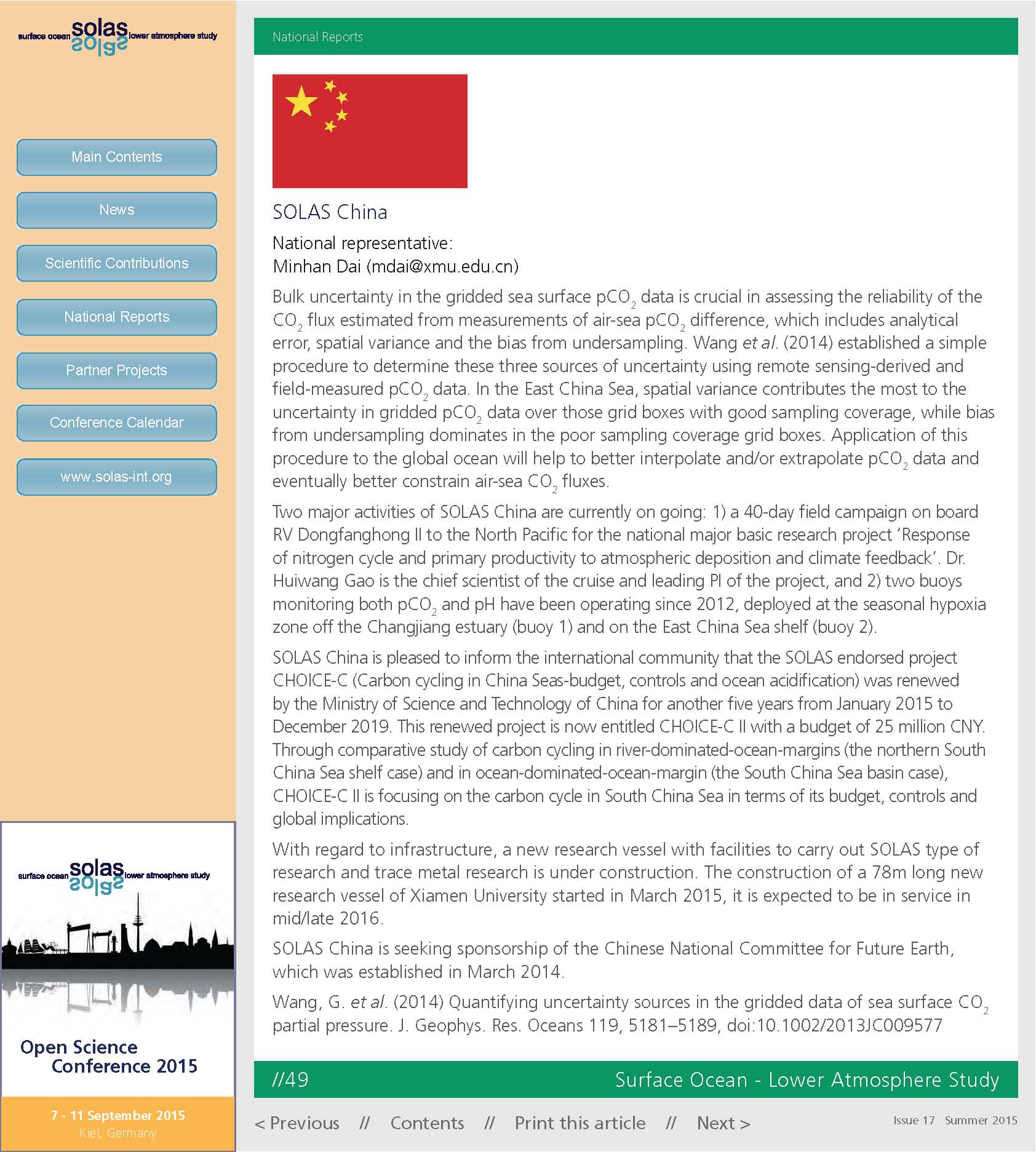 SOLAS(Surface Ocean Low Atmosphere Study) NEWS 2015年第17卷发布CHOICE-C II立项消息: